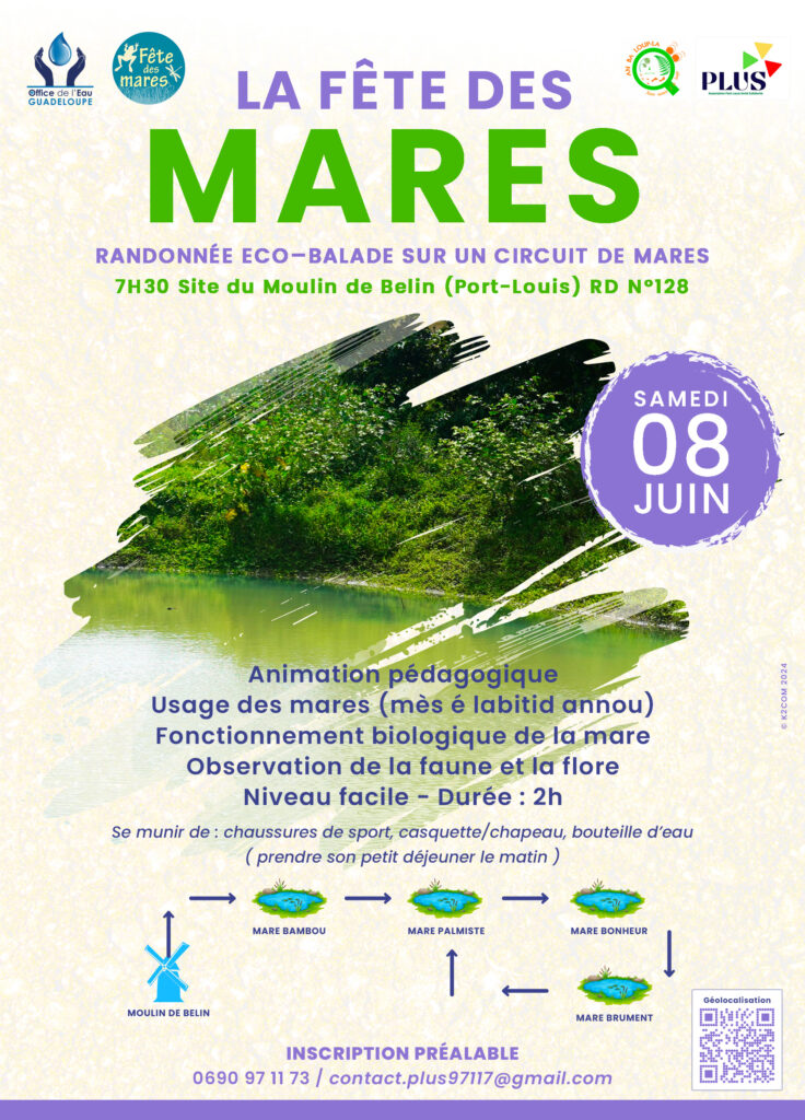 À l’occasion de la « Fête des mares », qui se déroule cette année du 1er au 9 juin, l’Office de l’eau de Guadeloupe organise une randonnée type éco-balade en collaboration avec le réseau participatif des mares, l’Association « An ba loup la » et l’association PLUS.