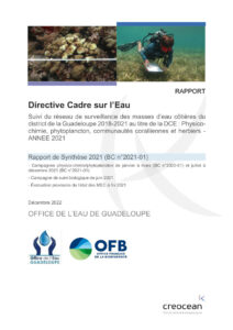 Suivi du réseau de surveillance des masses d’eau côtières du district de la Guadeloupe 2018-2021 au titre de la DCE : Physico-chimie, phytoplancton, communautés coralliennes et herbiers – Année 2021 – Résumé synthétique
