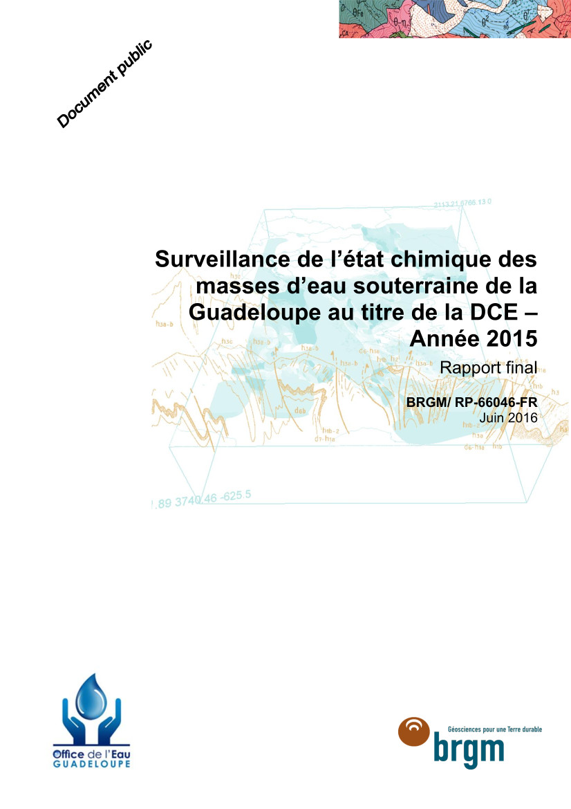 Surveillance de l’état chimique des masses d’eau souterraine de la Guadeloupe au titre de la DCE – Année 2015