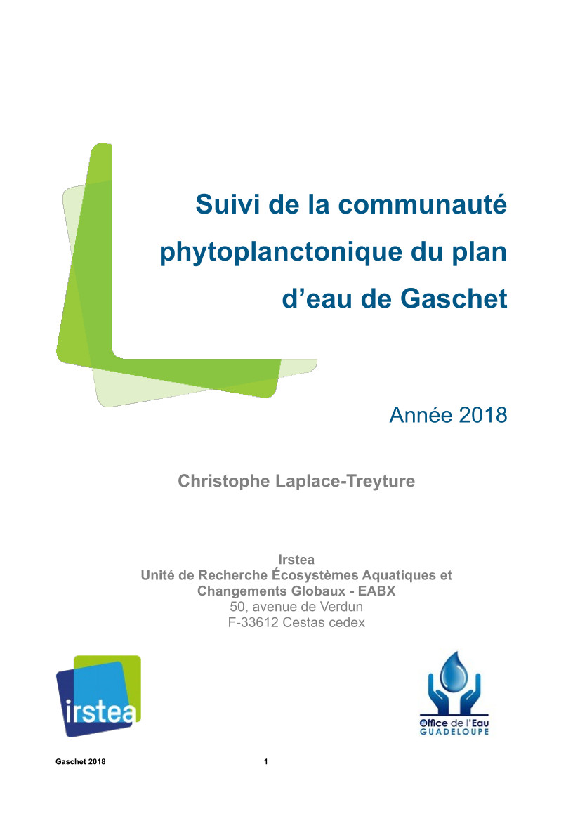 Programme de surveillance de la Retenue d’eau de Gaschet – Prélèvements et analyses physico-chimiques et hydrobiologiques – Année 2018
