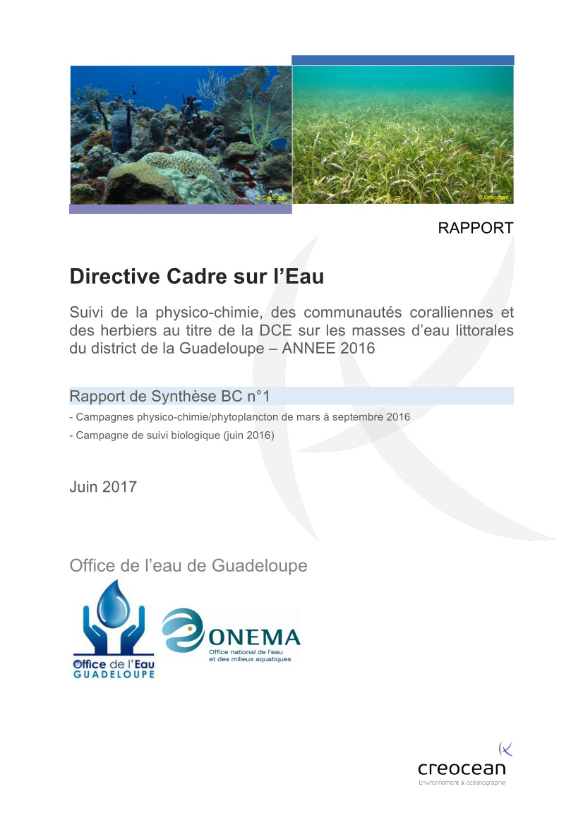 Suivi de la physico-chimie, des communautés coralliennes et des herbiers au titre de la DCE sur les masses d’eau littorales du district de la Guadeloupe – Période 2016-2017 – Document préliminaire