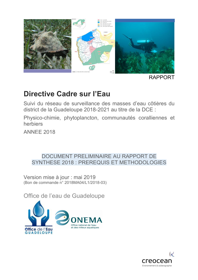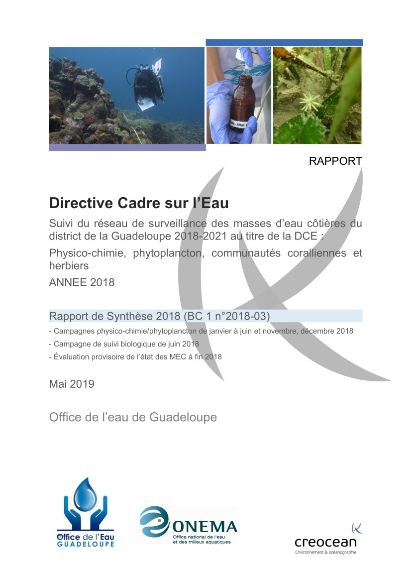 Suivi du réseau de surveillance des masses d’eau côtières du district de la Guadeloupe 2018-2021 au titre de la DCE : Physico-chimie, phytoplancton, communautés coralliennes et herbiers – Année 2018 – Document préliminaire