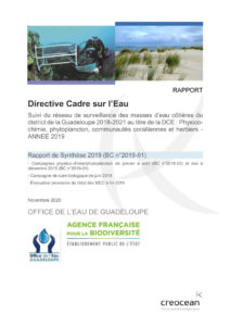 Suivi du réseau de surveillance des masses d’eau côtières du district de la Guadeloupe 2018-2021 au titre de la DCE : Physico-chimie, phytoplancton, communautés coralliennes et herbiers – Année 2019