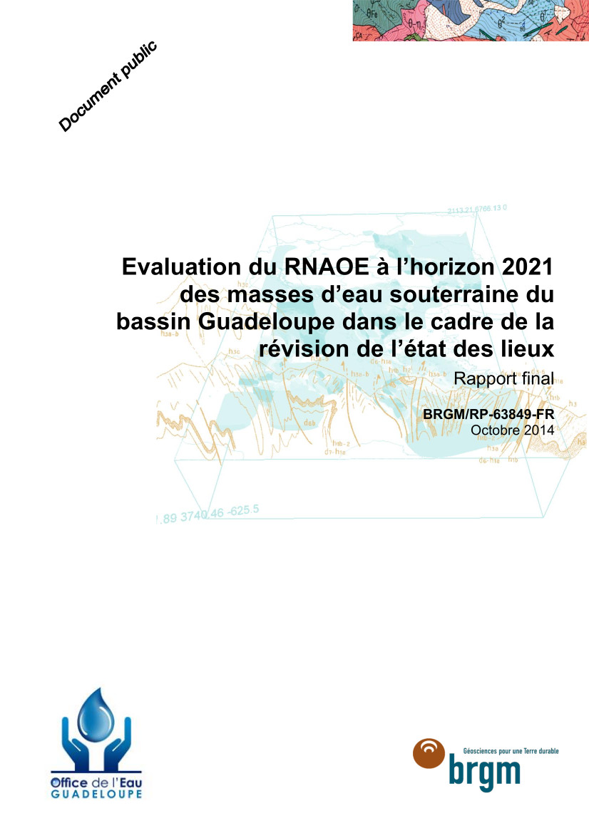 Évaluation du RNAOE à l’horizon 2021 des masses d’eau souterraine du bassin Guadeloupe dans le cadre de la révision de l’état des lieux