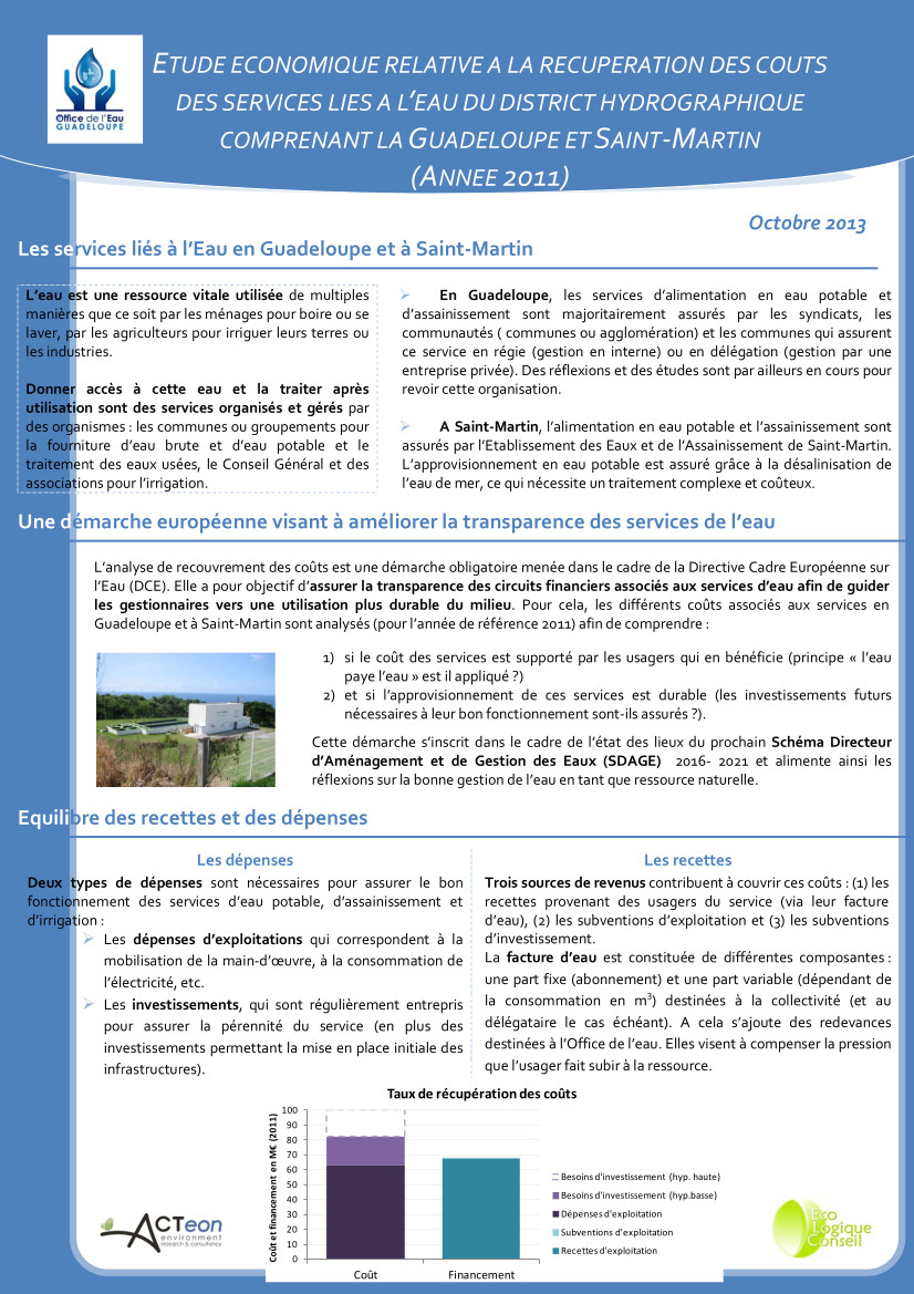 Étude économique relative à la récupération des coûts des services liés à l’eau du district hydrographique comprenant la Guadeloupe et Saint-Martin – Synthèse de l’étude