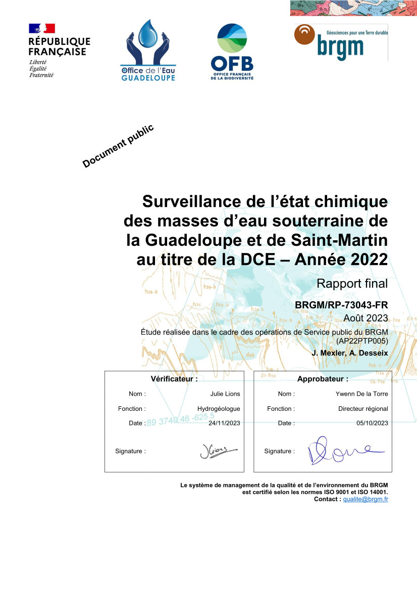 - Auteur : BRGM OFB Office de l'Eau Guadeloupe