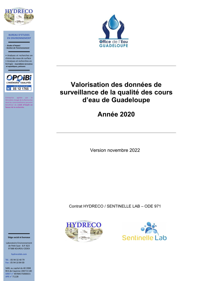 - Auteur : Hydreco Office de l'Eau Guadeloupe Sentinelle Lab