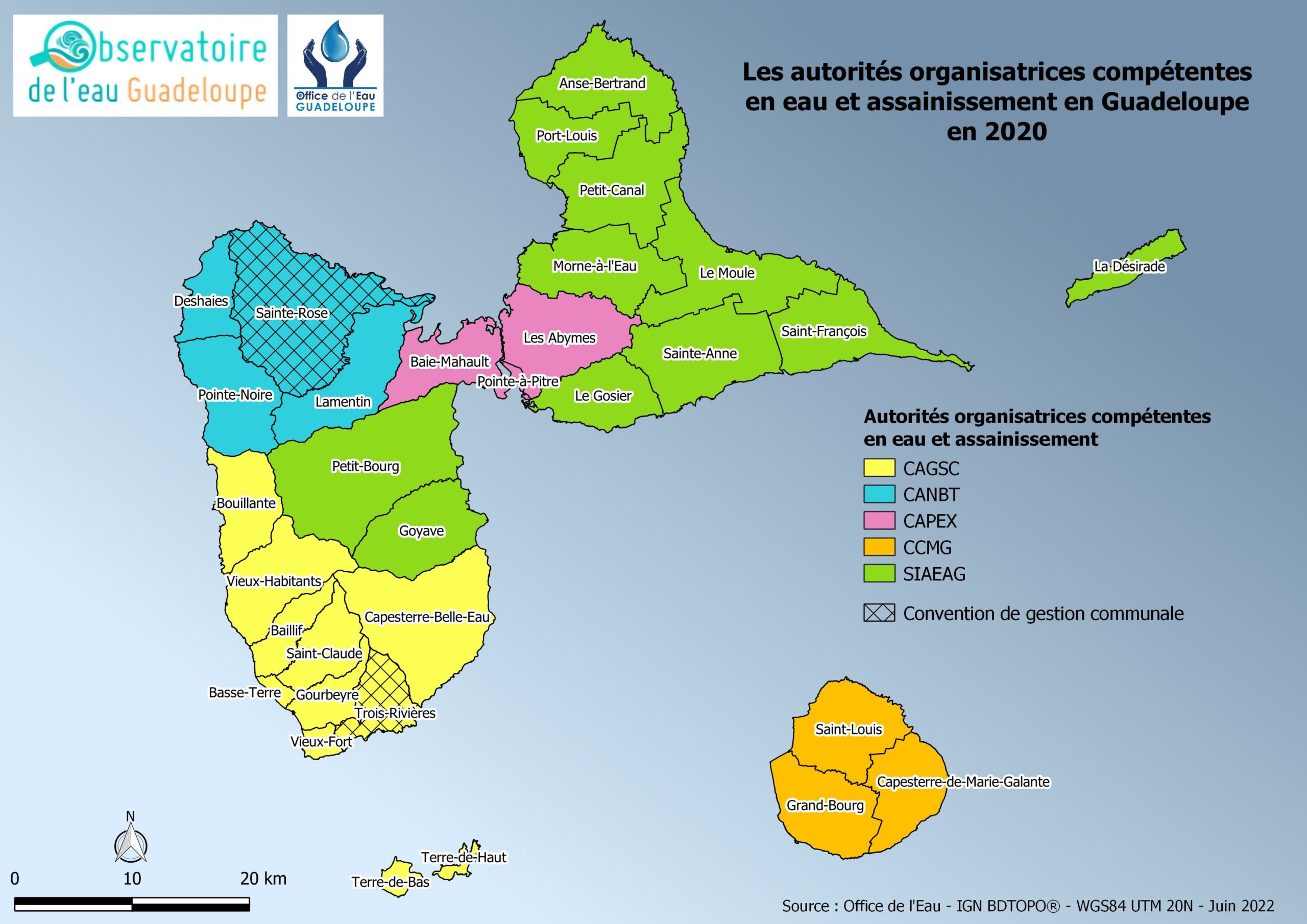 Autorités organisatrices compétentes en eau et assainissement en Guadeloupe en 2020