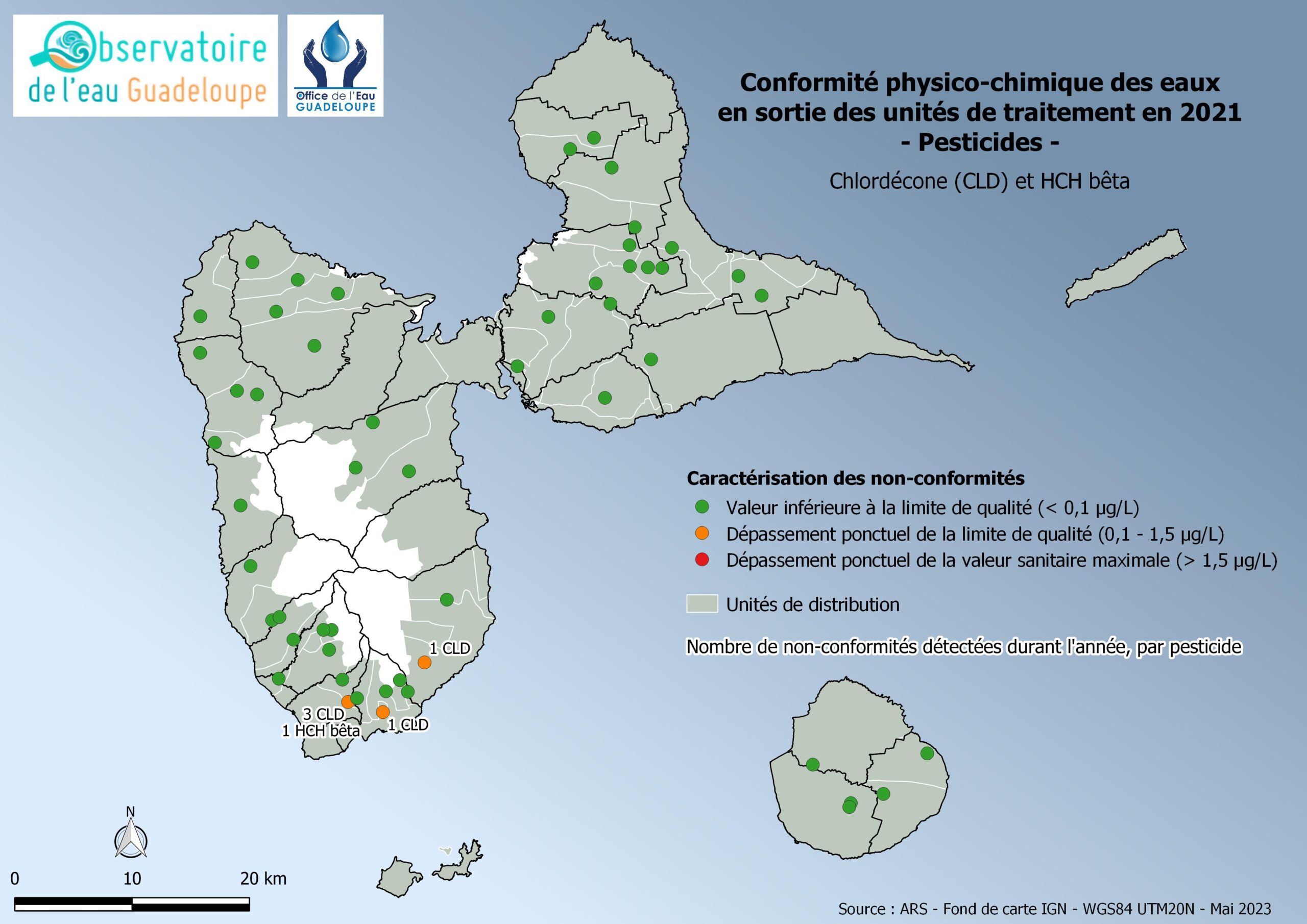 Conformité pesticides dans les unités de traitement de Guadeloupe en 2021