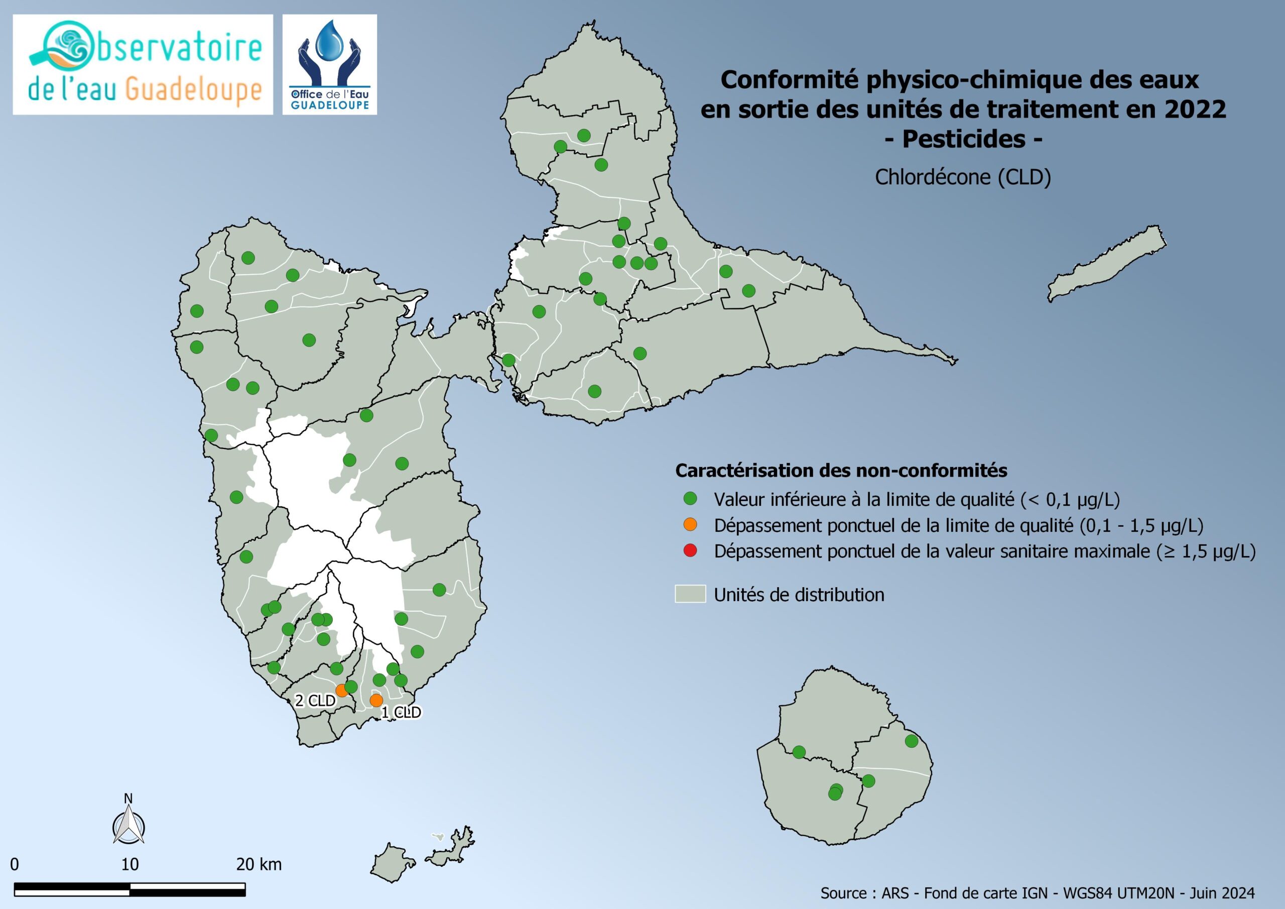 Conformité pesticides dans les unités de traitement de Guadeloupe en 2022