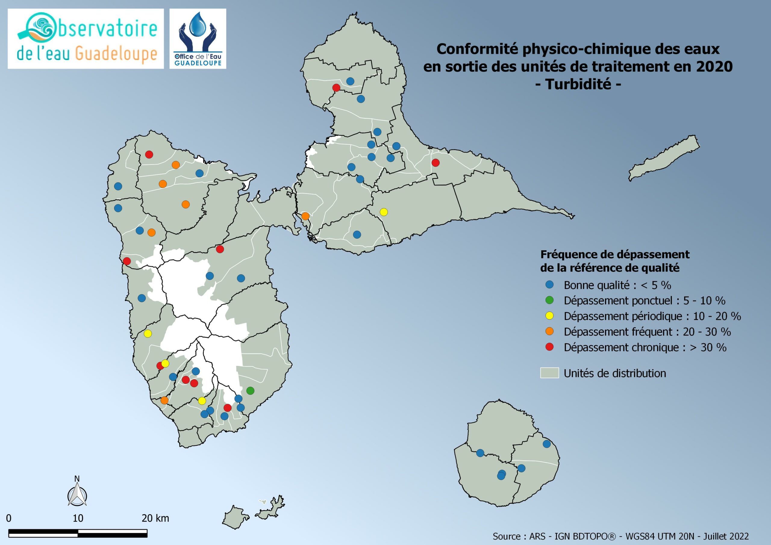 Conformité turbidité dans les unités de traitement de Guadeloupe en 2020