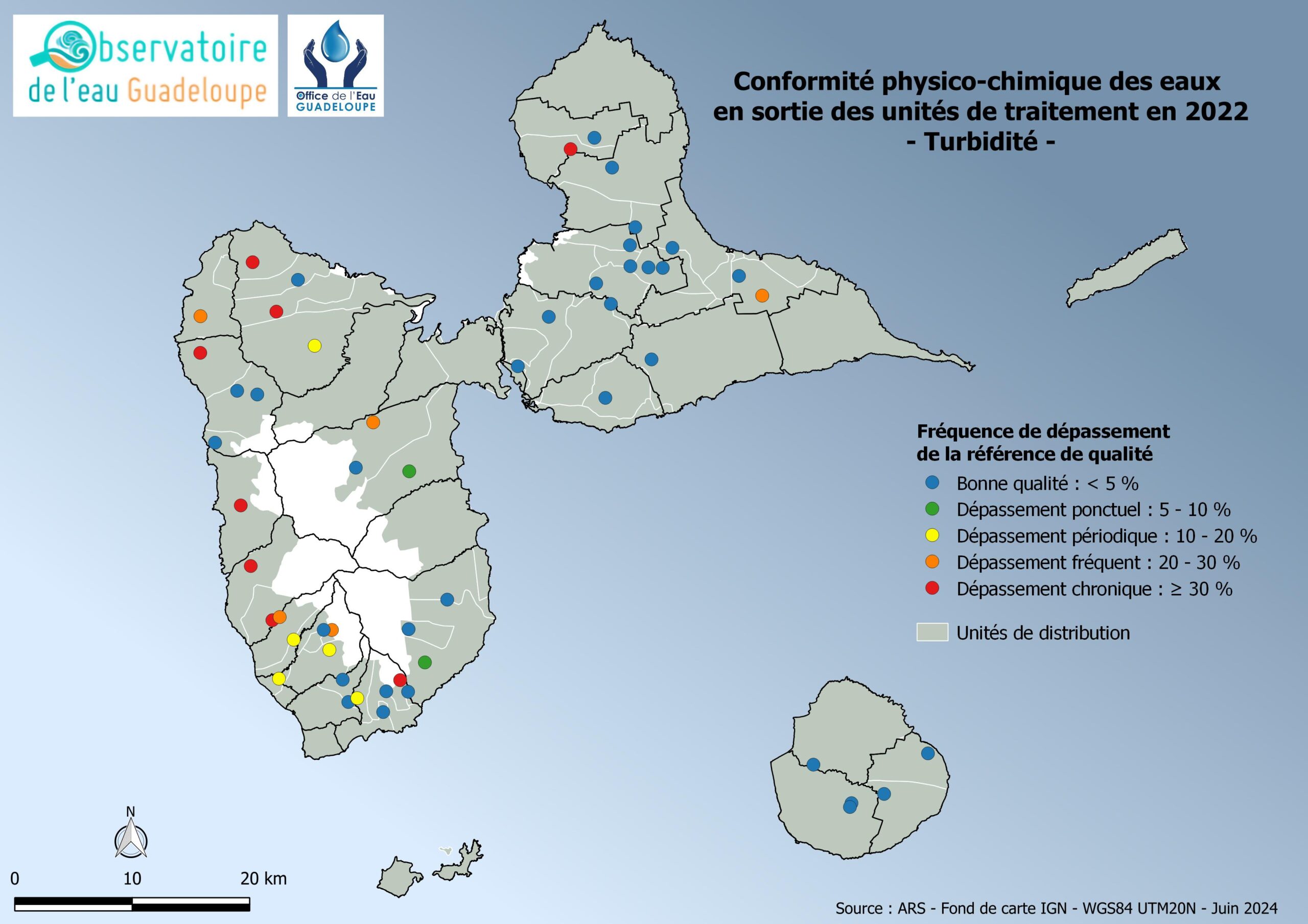 Conformité turbidité dans les unités de traitement de Guadeloupe en 2022