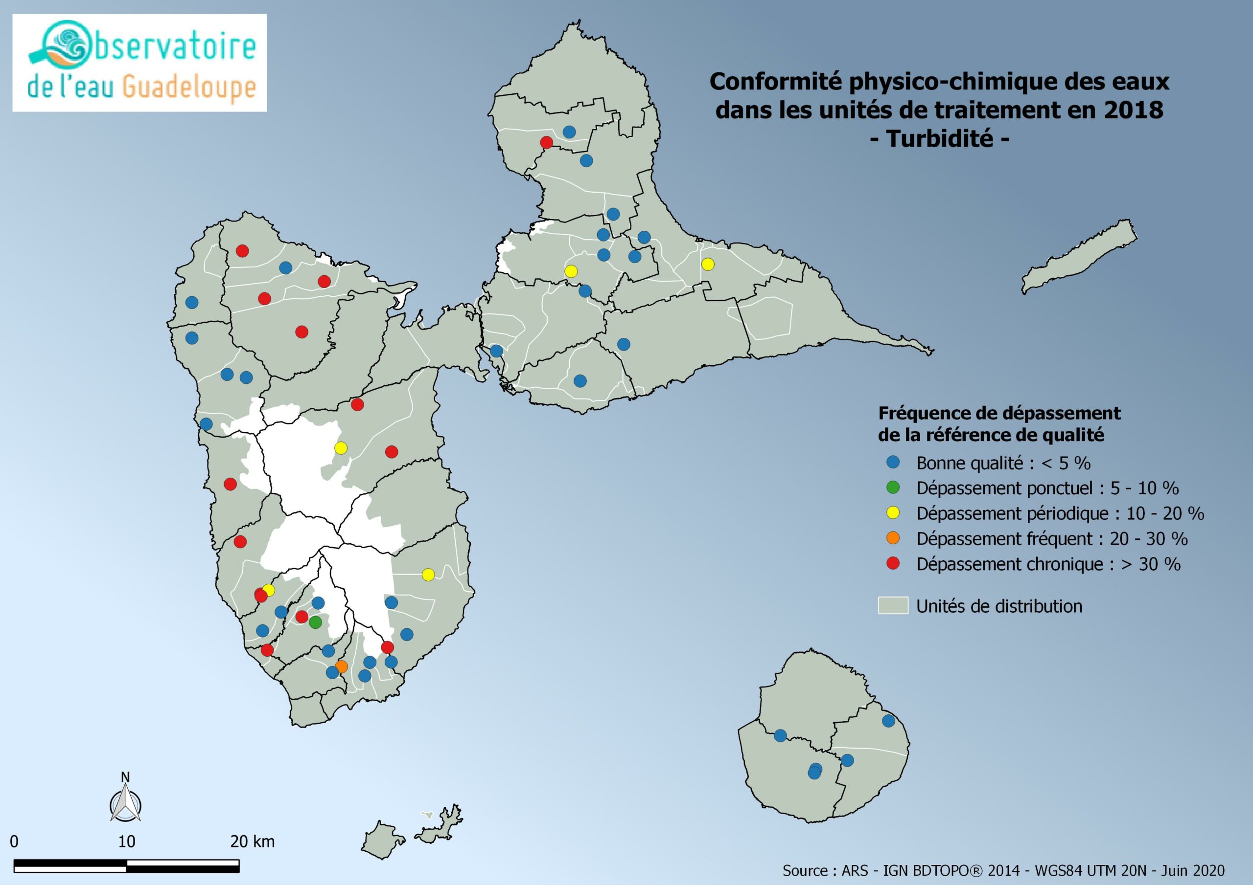 Conformité turbidité dans les unités de traitement de Guadeloupe en 2018
