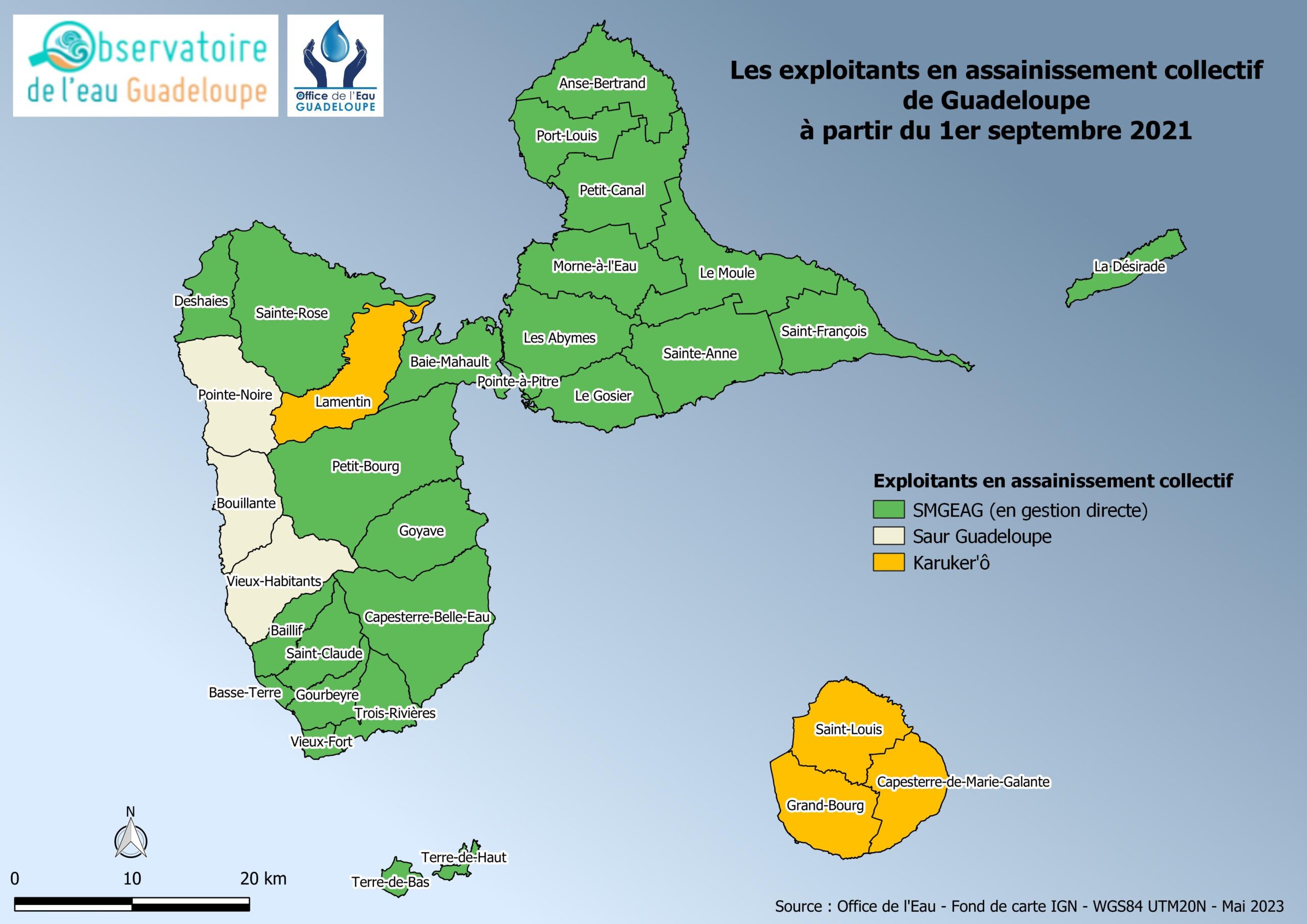 Exploitants du service public d’assainissement collectif de Guadeloupe à partir du 1er septembre 2021