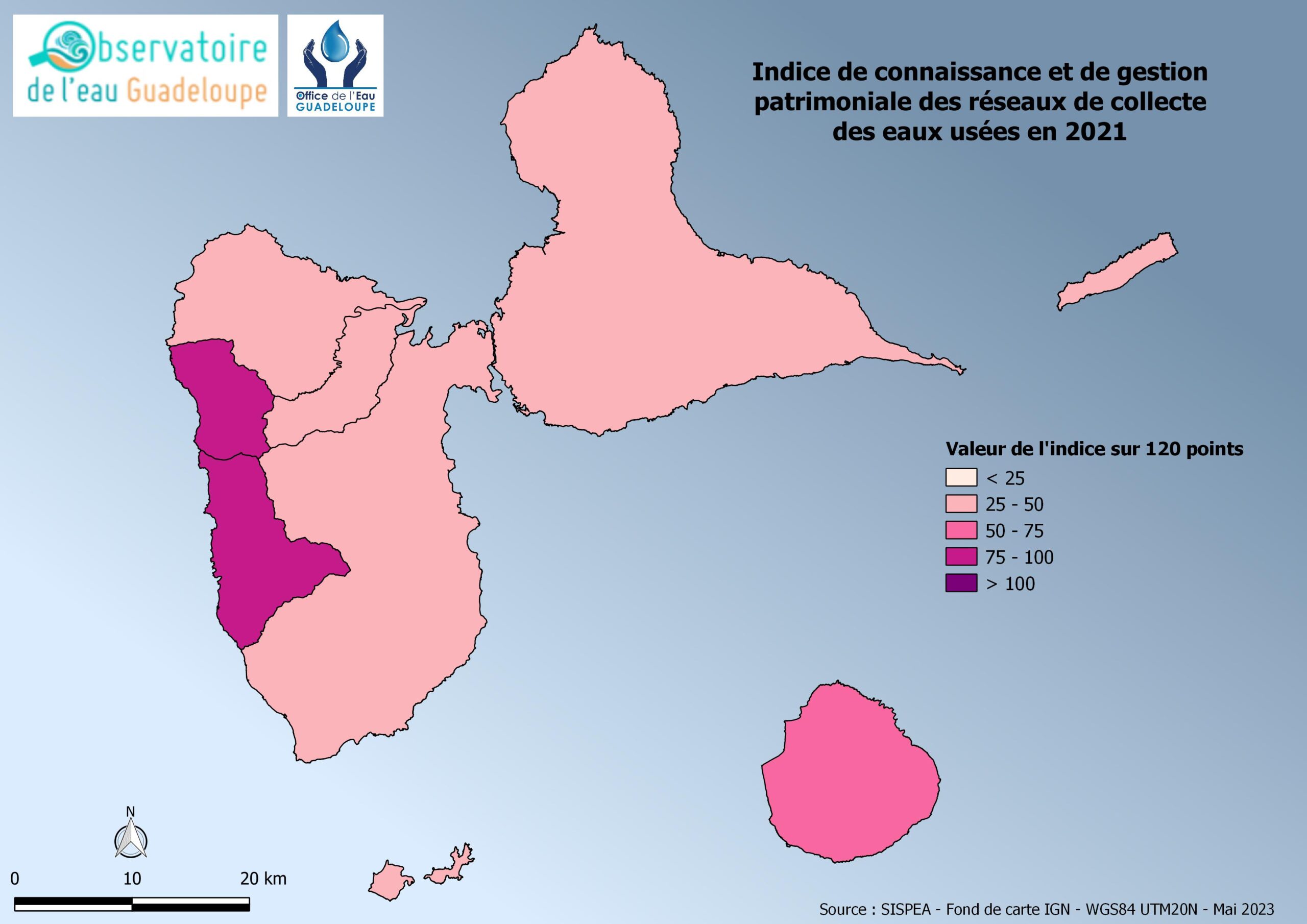 Indice de connaissance et de gestion patrimoniale des réseaux de collecte des eaux usées de Guadeloupe en 2021
