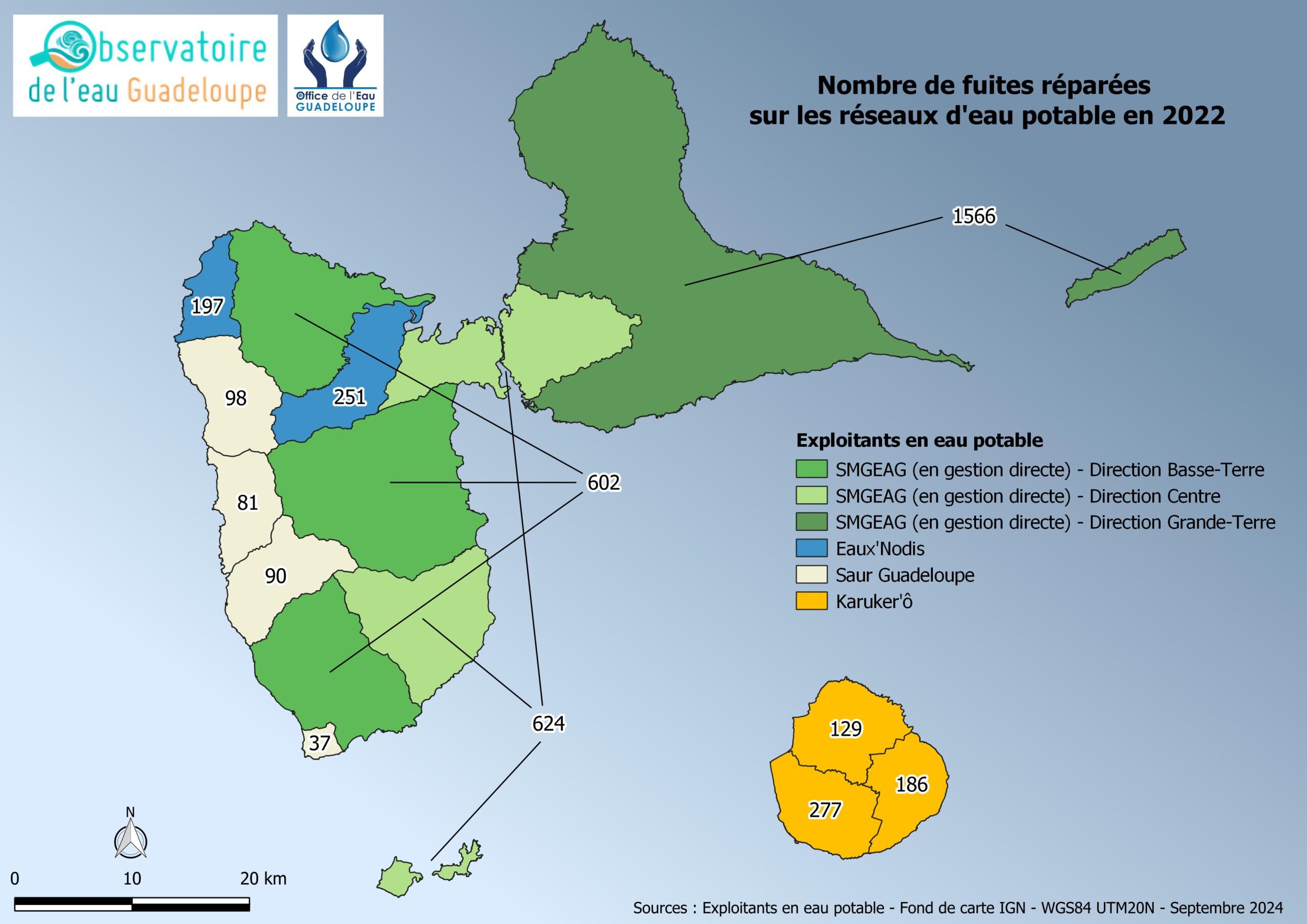Nombre de fuites réparées sur les réseaux d’eau potable en 2022