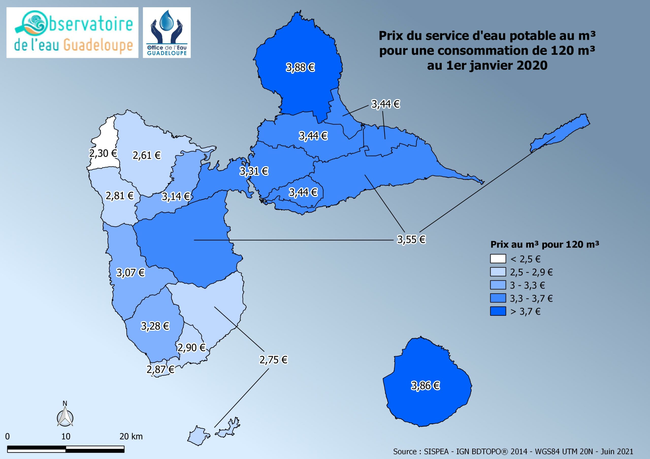 Prix du service public d’eau potable en Guadeloupe au 1er janvier 2020