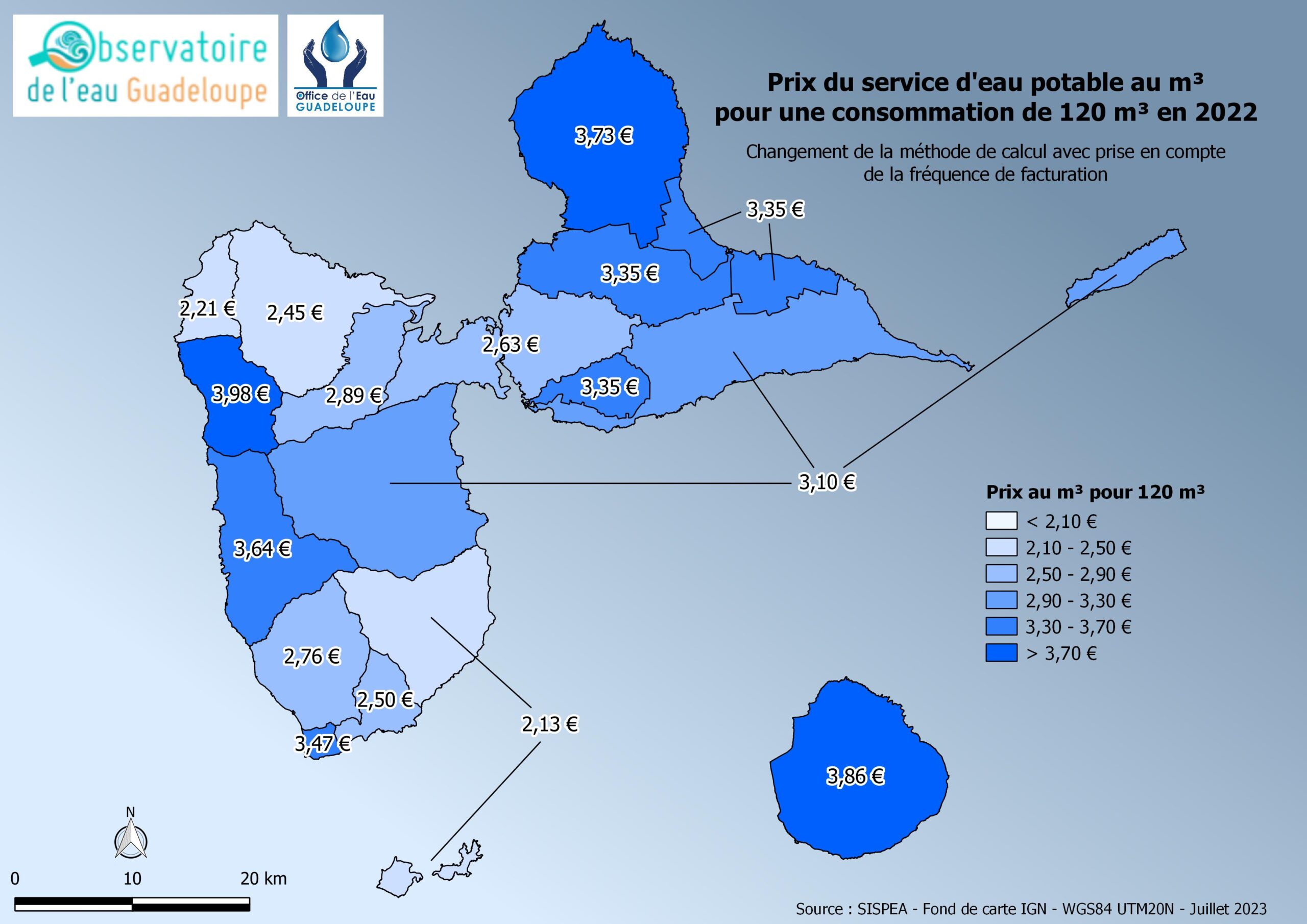 Prix du service public d’eau potable en Guadeloupe en 2022