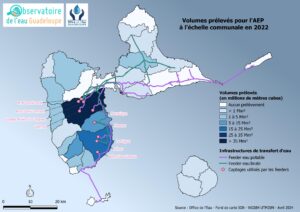 Volumes prélevés pour l’AEP à l’échelle communale en Guadeloupe en 2022