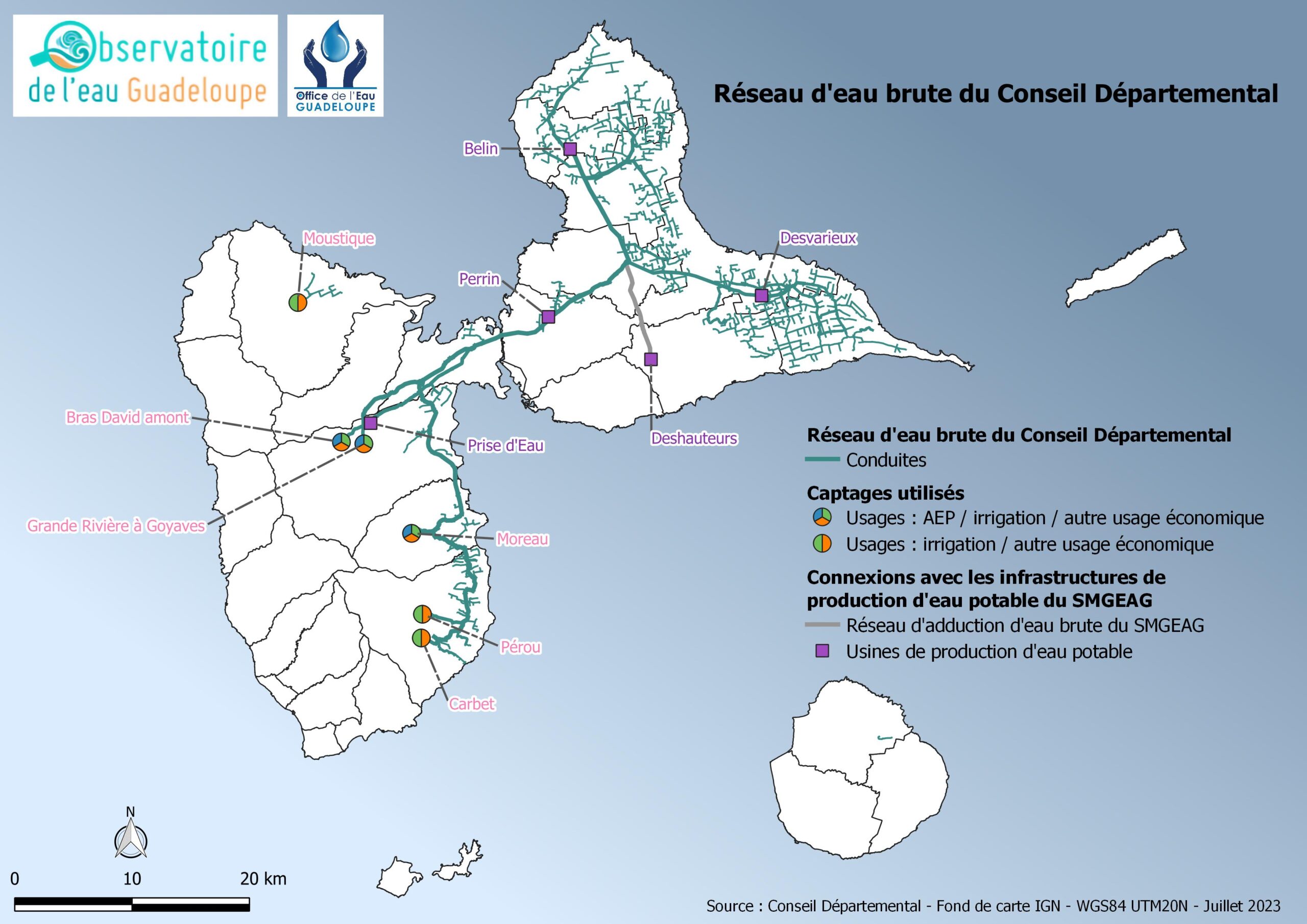 Taux de perte sur le réseau de distribution d’eau potable en Guadeloupe en 2022
