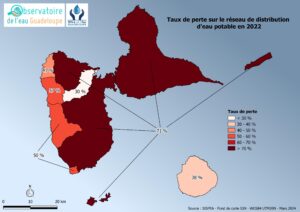 Taux de perte sur le réseau de distribution d’eau potable en Guadeloupe en 2022