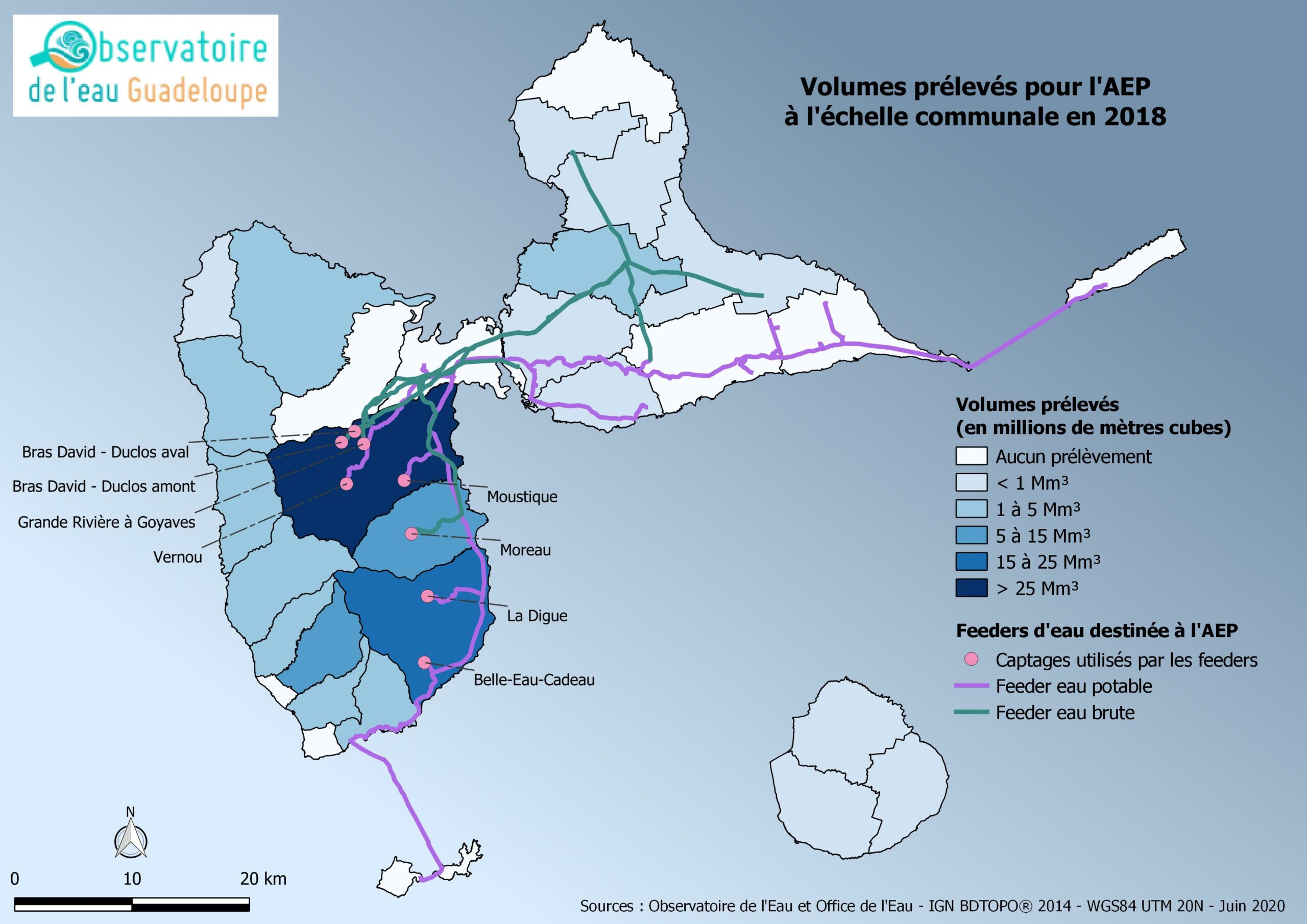 Volumes prélevés pour l’AEP à l’échelle communale en Guadeloupe en 2018