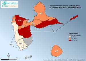 Taux d’impayés sur les factures d’eau de l’année 2018 au 31 décembre 2019 en Guadeloupe