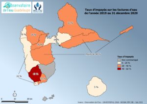 Taux d’impayés sur les factures d’eau de l’année 2019 au 31 décembre 2020 en Guadeloupe
