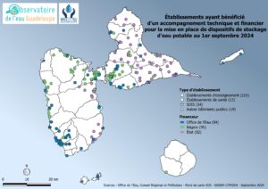 Établissements ayant bénéficié d’un accompagnement technique et financier pour la mise en place de dispositifs de stockage d’eau potable au 1er septembre 2024