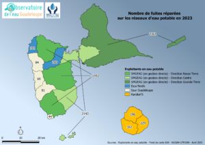 Nombre de fuites réparées sur les réseaux d’eau potable en 2023