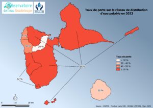 Taux de perte sur le réseau de distribution d’eau potable en Guadeloupe en 2023
