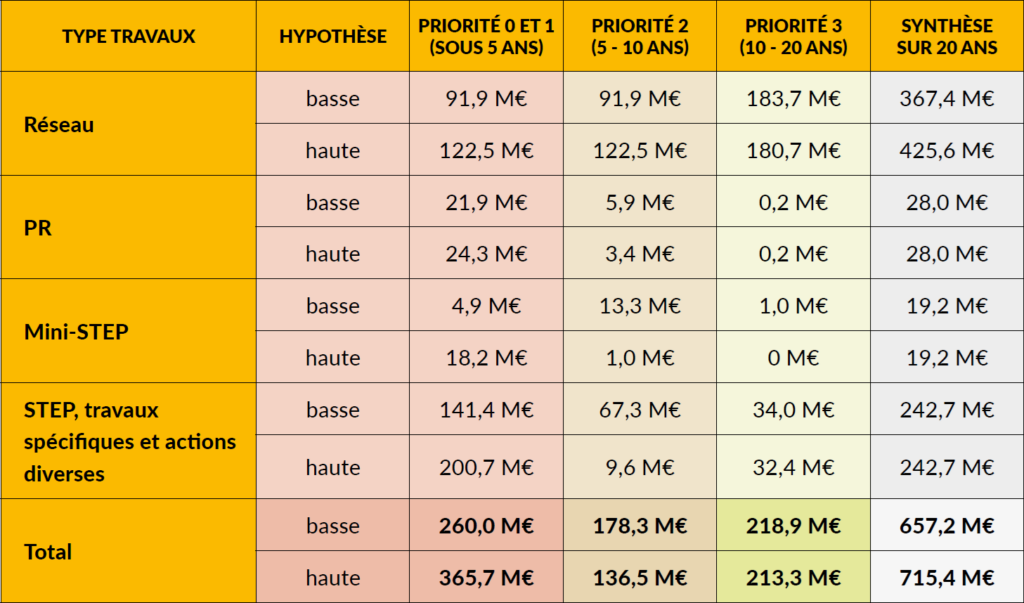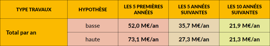 - Priorité 2 (autres) : entre 10,5 et 11,6 M€/an pendant 45 ou 50 ans.