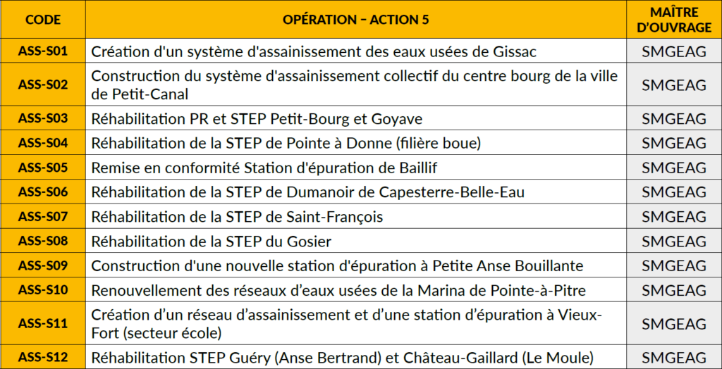 Les opérations de l’action 5 du plan d’accélération du PPI concernent des travaux sur les infrastructures d’assainissement des eaux usées, pour un montant de 34 millions d’euros.