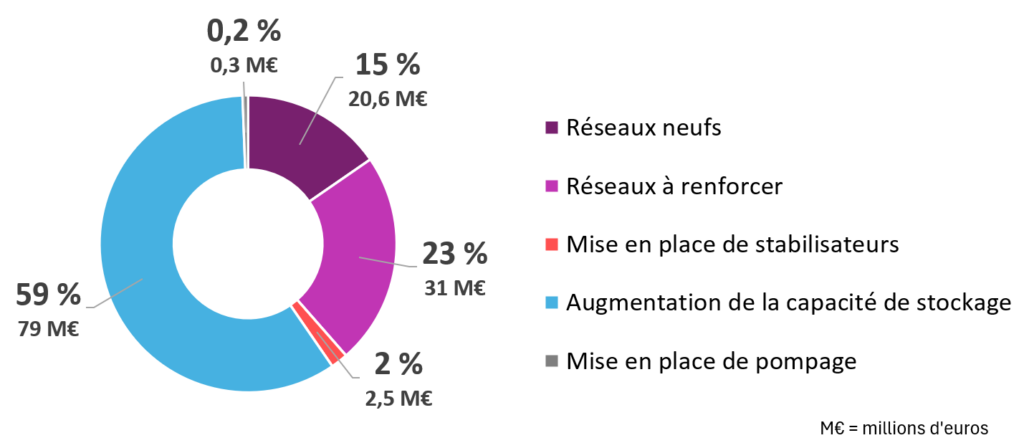 - augmenter le stockage quand des insuffisances sont identifiées (atteindre 47 100 m3 afin de disposer d’une journée de stockage à l’échelle de l’ensemble des ZA) ;