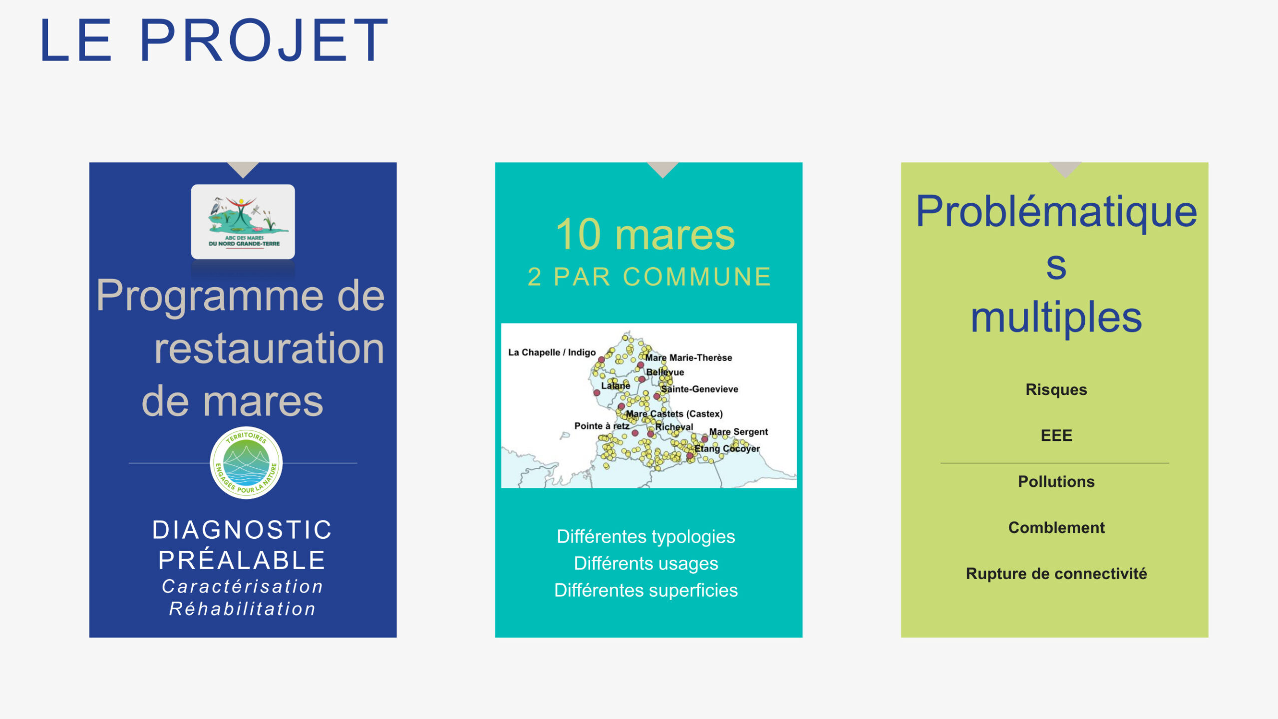 La première étape, objet de ce présent rapport, a donc consisté en une phase de caractérisation de 45 mares présélectionnées par la CCMG et les élus des différentes communes, afin de pouvoir conclure quant à leur état, à l’urgence de leur réhabilitation et aux aménagements à effectuer.