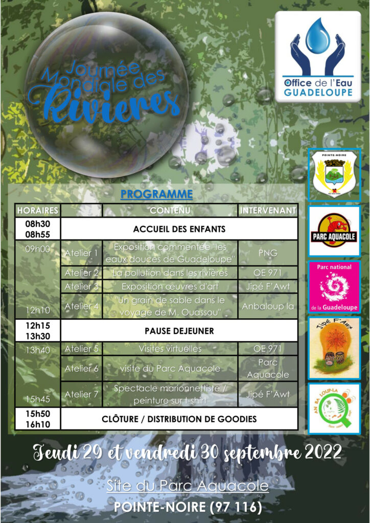 Ce dimanche 24 septembre 2023, l’Office de l’Eau de la Guadeloupe invite tous les publics (seul, entre amis ou en famille) à découvrir sa série de quizz « à la découverte de la biodiversité de nos rivières » afin d’apprendre et de s’instruire sur ces écosystèmes précieux.