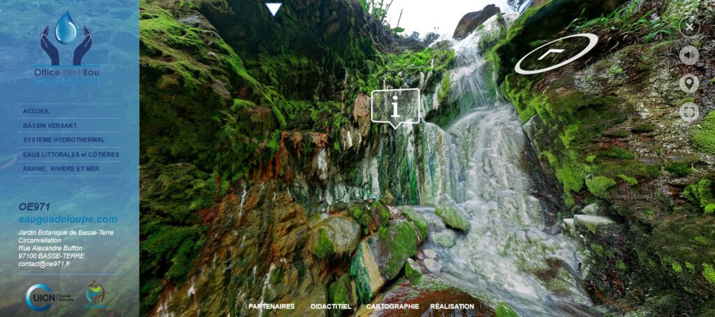 L’Office de l’Eau, en partenariat avec le PRZHT-UICN, a développé un outil de sensibilisation innovant pour la préservation et la reconquête des milieux aquatiques guadeloupéens : les « visites virtuelles ». L’Office de l’Eau a en effet choisi de miser sur de nouvelles avancées technologiques pour renforcer la prise de conscience collective sur les problématiques environnementales et pour sensibiliser un large public à la grande fragilité des milieux aquatiques de notre archipel.